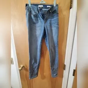 skinny ankle jeans light wash blue jeans with gold studded legs