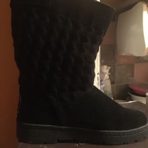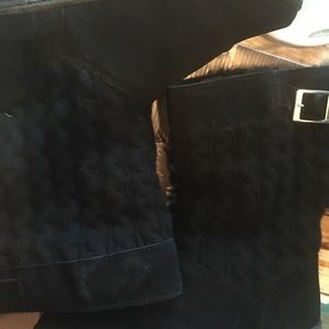 NWT Black Suede & Sheepskin Cable Knit Buckle Bear Paw Candice Boots