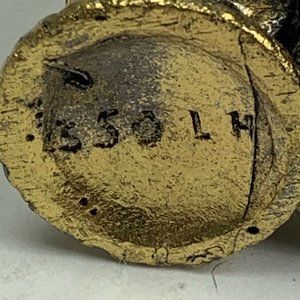Vintage filigree gold tone perfume, lipstick or makeup brush holder. Cherub design. Good condition. Brush not included. Measures approx 2-1/2" tall x 2-3/8" long.