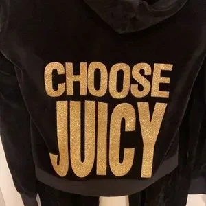 Y2K Juicy Couture Black VELOUR Tracksuit Set “CHOOSE JUICY” GOLD BLING Glitter detail
