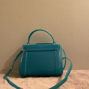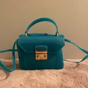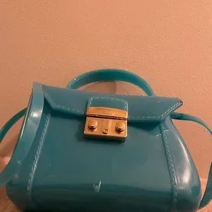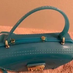 **SOLD** FURLA Mini Candy Bag Jelly Blue Teal Crossbody Shoulder Strap & Carry Handle Purse