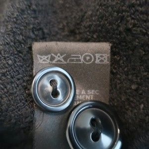 Gently worn. Good condition. No major flaws, some faint gray smudging on cream trim may come out with cleaning. 54% cotton, 34% acrylic, 9% polyester, 2% polyamide, 1% elastane