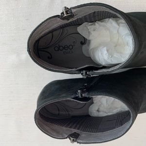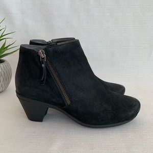 Abeo Rommie Neutral Black Suede Leather Heeled Ankle Booties Woman’s 7N