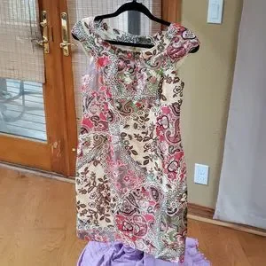 Lovely, like new paisley dress. Back zipper with front V-hole at neck. Classic design. 15" across, 36" shoulder to hem. #531