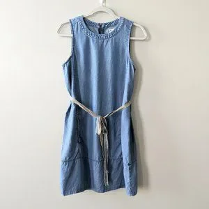 Madewell Chambray Sleeveless Tie-Waist Mini Dress
