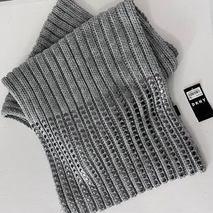 DKNY Women’s Chunky Knit Heather Gray Studded Ribbed Oversized Scarf
