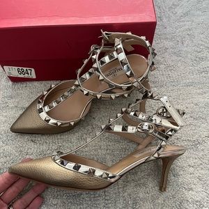 EUC Valentino Rockstud Pumps 65mm size 6 EU36 light gold