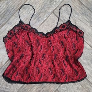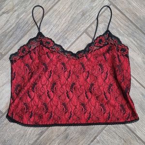 Vintage Fire Red and Black Lace Camisole/by Best Form Size 38/ Crop top