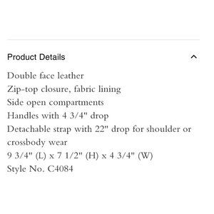 - Detachable strap with 22" drop for shoulder or crossbody wear