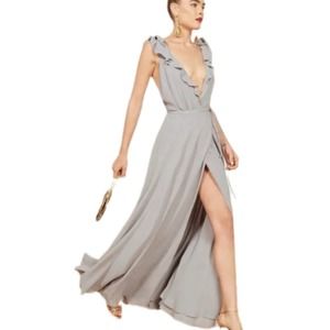 $388 Retail Reformation Mesium Gray Fog Peppermint Maxi Dress Ruffle NWT