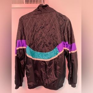 Vintage windbreaker with stitch detailing on the top and retro design across the mid section and two pockets. Some of the stitching on top has loosened but the jacket itself is still well intact. Size L but can fit small-medium in a slightly oversized style.
