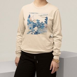 Evening View Mt Fuji VTG Ukyio-e Print Long Sleeve Graphic Tee T-shirt S M L XL
