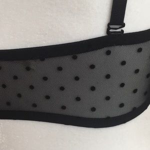 Sexy, comfy, and cute is how we'd describe the Free People Sierra Black Swiss Dot Mesh V-Neck Bandeau! This convertible bralette can be worn with or without straps, either way, its hidden V-bar will provide a dose of sexy support. Stretchy mesh construction is decorated with fuzzy Swiss dots. Hidden no-slip strips and removable adjustable straps.