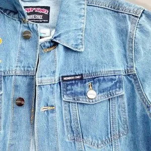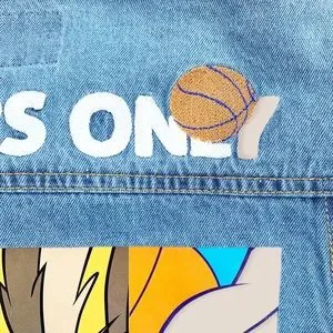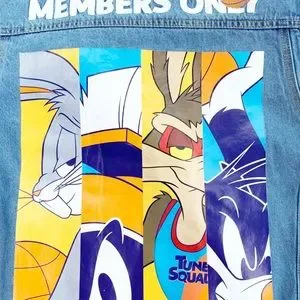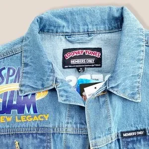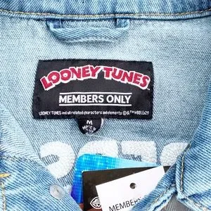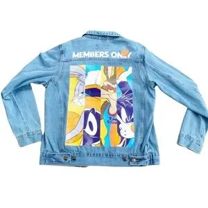 Members Only Space Jam Looney Tunes New Legacy Denim Blue Jean Jacket Men Size Medium. Condition: New without Tags {NWOT}. The tags fell off when I pulled the jacket out of the bag, but I still have them and will send with jacket. LeBron James new Space Jam movie. Back sticker or character decal is a little wrinkled in places. Embroidered “Members Only” with a basketball above character decal. 100% cotton. Embroidery is a little fuzzy. Pit to Pit: 21” flat