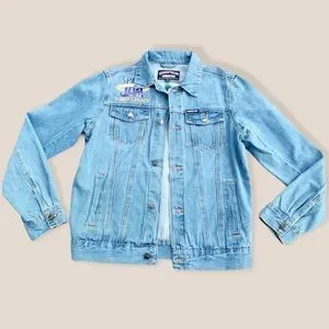 Members Only New Space Jam Looney Denim Jacket Size Medium Graphic Print