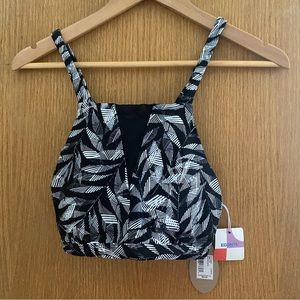 New with tags! Regan bikini top from prAna in color/pattern “Black Springtime”. High neck style with mesh detail. Athletic look but still chic and sexy! This is a flattering style.