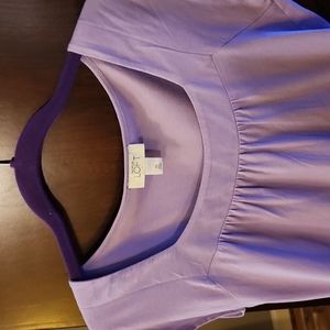 Loft square neck t-shirt. Cap sleeves, ruching at bottom of the neckline. Lavender, Size XS.