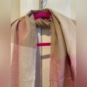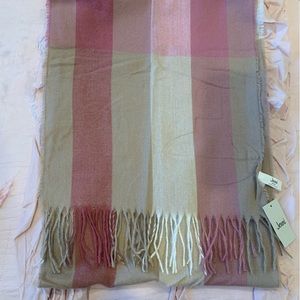 NWT; perfect scarf to wrap around and bundle into; not too bulky but still very warm; has pretty fringe at each end; soft and feminine colors.