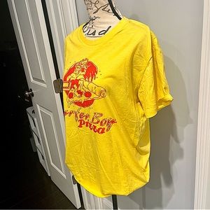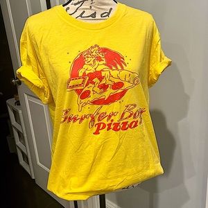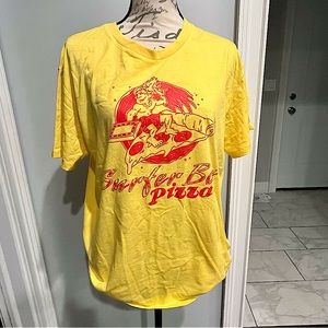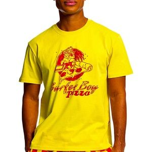 Netflix Stranger Things “Surfer Boy Pizza” Graphic Short Sleeve Tee Shirt in Yellow and Red