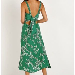 Faithful the brand green floral midi dress with back tie back and bottom zipper