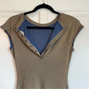 RARE Vintage Alaia Paris Cap Sleeve Sculpted Bodycon Shift Dress - Gold/Blue