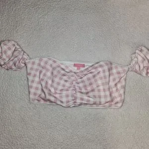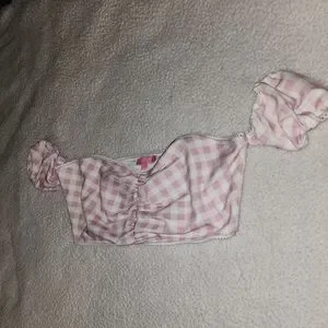 NWT Dolls Kill Pink And White Plaid Sexy Peasants Style Crop Top 😍