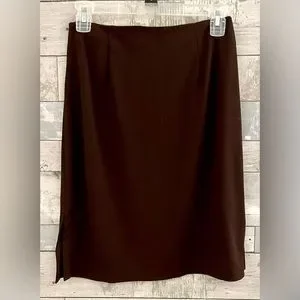 Ann Taylor Chocolate Brown Knee Length Skirt. Sz 4P. Back Zip. Side Slits.