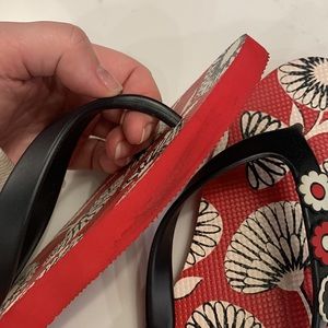 very cute and supportive sandals with red black and white floral print, never worn