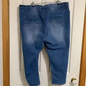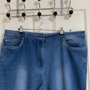 Blue bedazzled wide leg jeans Size 22 Bedazzling on pockets both front & back Functioning pockets Belt loops Little slits on both legs at the bottom