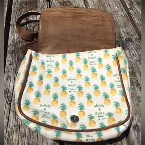 Mary & Martha Glories & Grace Pineapples Crossbody Bag Purse Hallmark White