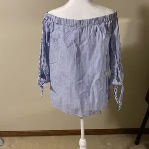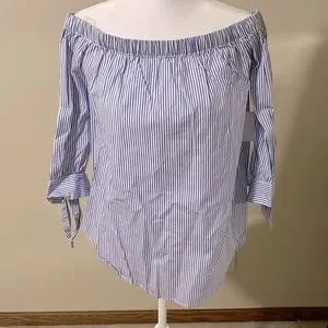 Off the shoulder stripped blouse with tie accents on arms