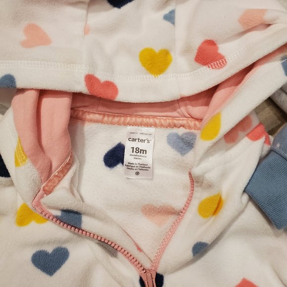 Lot of four girl's hooded play suits. Good used condition. Carter's size 18 months.