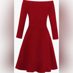 SOLD SOLD Vintage Off Shoulder Pockets Red A-Line Party Cocktail Swing Dress X
