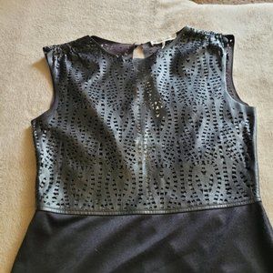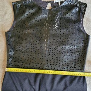 NWT sleeveless dress, pleather top with cutouts and open back, knit skirt. Dress is NWT however there is some wear around the collar and pilling in the skirt
