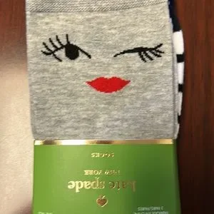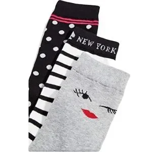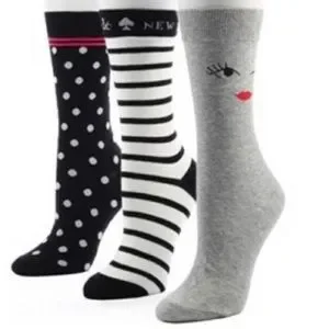 🎊HP 3 Pairs KATE SPADE Gray Black WINK Polka Dot Striped Trouser Crew Socks NIP
