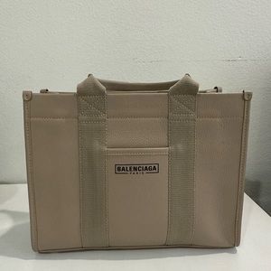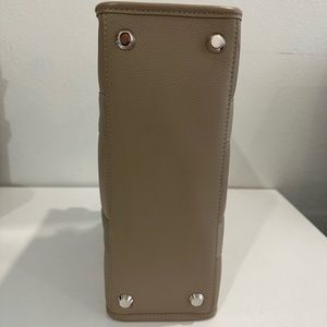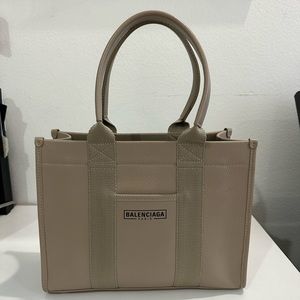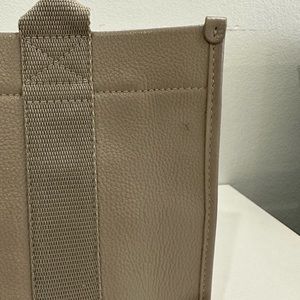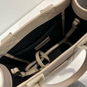 A re-envisioning of the hard-wearing bags originally developed for the military, this smartly structured tote is done in calfskin leather with a bold logo.