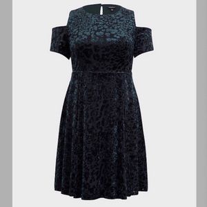New with Tags Torrid Cold Shoulder Green Velvet Leopard Dress Plus Size 0X