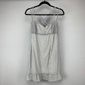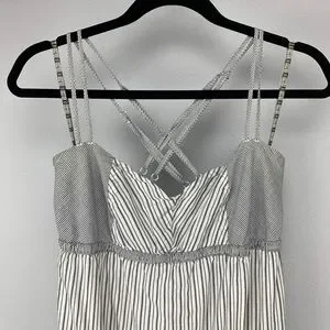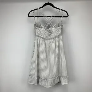 VOLCOM Gray And White Adjustable Strap Ruffle Tiered Smocked Back Sundress Large