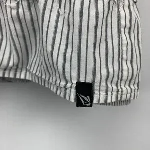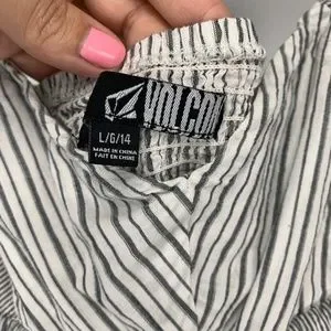 VOLCOM Gray And White Adjustable Strap Ruffle Tiered Smocked Back Sundre…