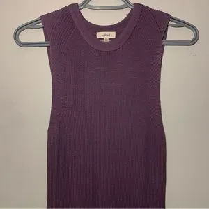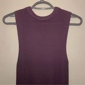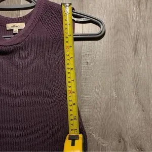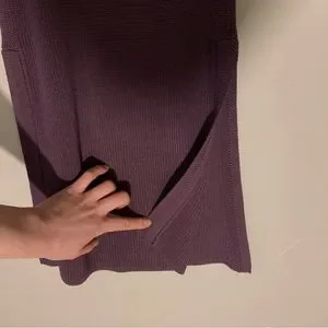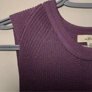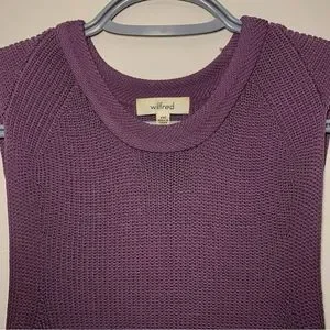A perfect piece from Aritzia’s Wilfred line that can be worn layered in the cooler weather or on its own. Long, warm and a gorgeous tighter knit pattern. 65% Rayon, 35% Nylon. *Less susceptible to pilling than the cotton blend version. In a deep, dusty purple colour. In excellent preworn condition with virtually no visible wear to it. Size XXS, but the sweater obviously has a fair amount of stretch to it. *Colour on model is slightly different than available sweater-see other photos.