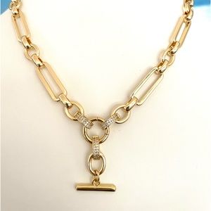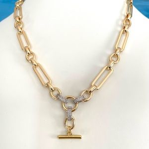 Chunky 18k Gold Fill Mixed Paperclip Chain Necklace Status T Bar Circle Toggle