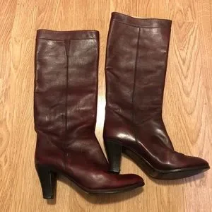 These calf boots are stunning. Genuine Italian leather featuring the most divine rich wine / burgundy color. Made in Morocco.