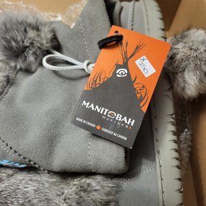 Canadian-made mukluks with cowhide suede upper and real rabbit fur