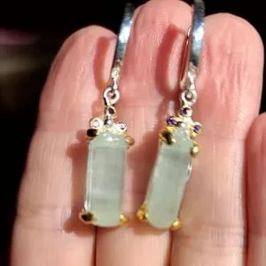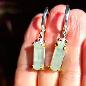15k each Aquamarine & Amethyst Sterling bar earrings