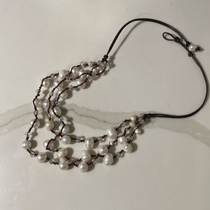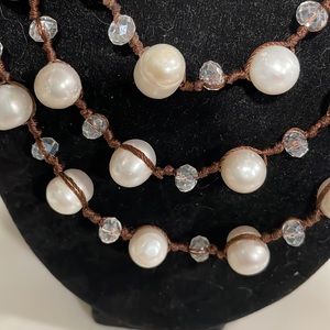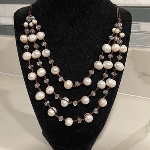 THREE LAYERS FAUX PEARLS/CRYSTALS NECKLACE.
