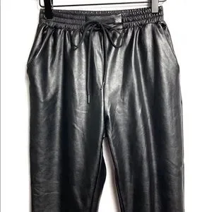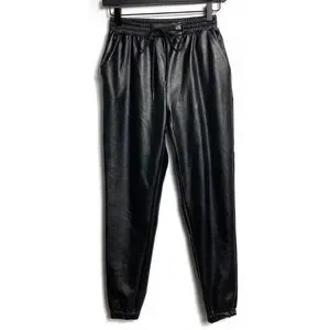 21 SAINTS BLACK FAUX LEATHER JOGGER PANTS