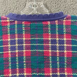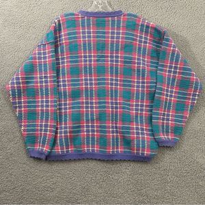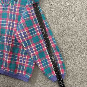 VTG Rainbow Reflections Plaid Floral V-Neck Sweater Womens Xl PreOwned