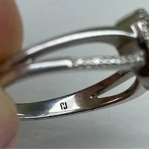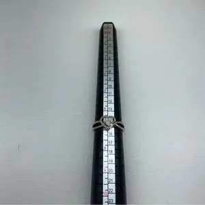 This ring is sold in as is condition so please refer to photos and ask questions. This ring is stamped 925 sterling silver and has a makers mark of JJ. There are no other markings. The stones set into the heart and around the heart to accent are 12 stones in total in an illusion setting. Most of these stones are tiny and I could only truly test one stone which tested as a simulated diamond. This ring is a U.S. size 7. There is some wear from use. I do accept fair offers so please feel free to leave one and thank you for shopping with me!