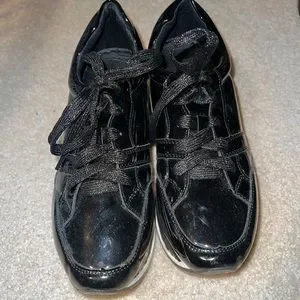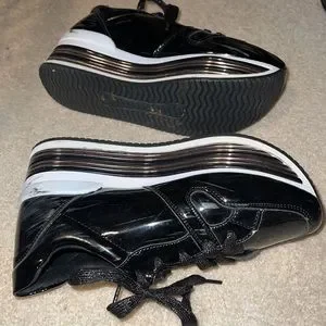 Black shiny platform metallic detailed sneakers