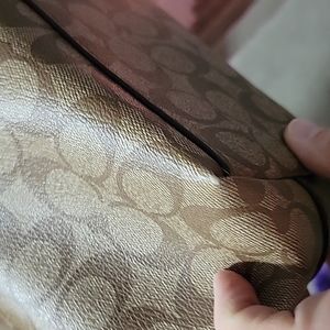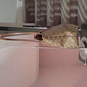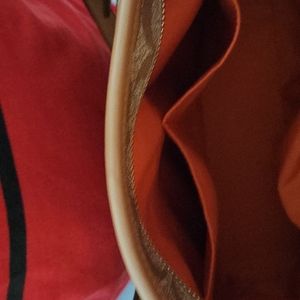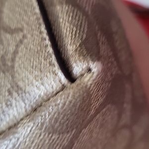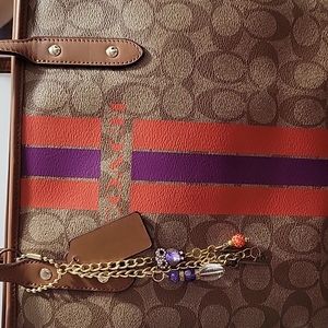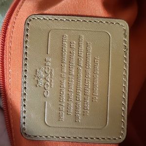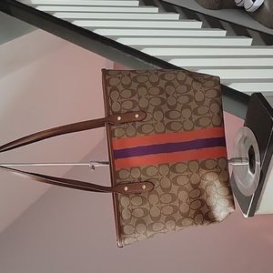 Gently used super cute Coach Watermelon Varsiry city Tote. This bag was very well taken care of. Looks brand new except the bottom of the four corners of the bag have little worn marks on them. Please see above pictures of the corners. No rips, stains or tears in this tote. The interior has no markings on the bottom. It has a zippered pocket on one side and two pockets on the other.